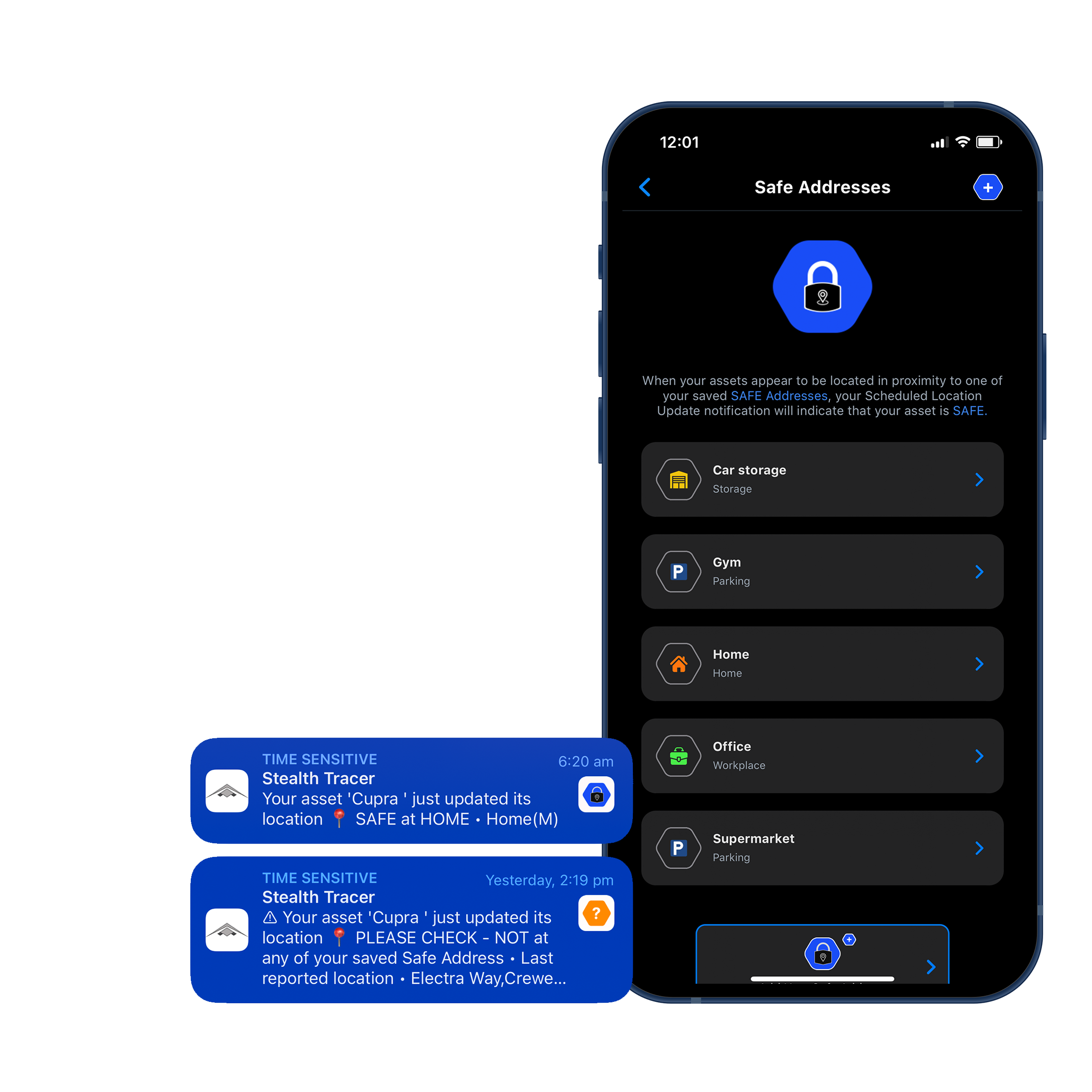 The Stealth Tracer app is simple to navigate and is the control centre for your Stealth Tracer GPS Asset Locator device. It can be associated to a single or multiple Stealth Tracer devices and will allow you to choose how each asset is safeguarded to give you full control over your own peace of mind.